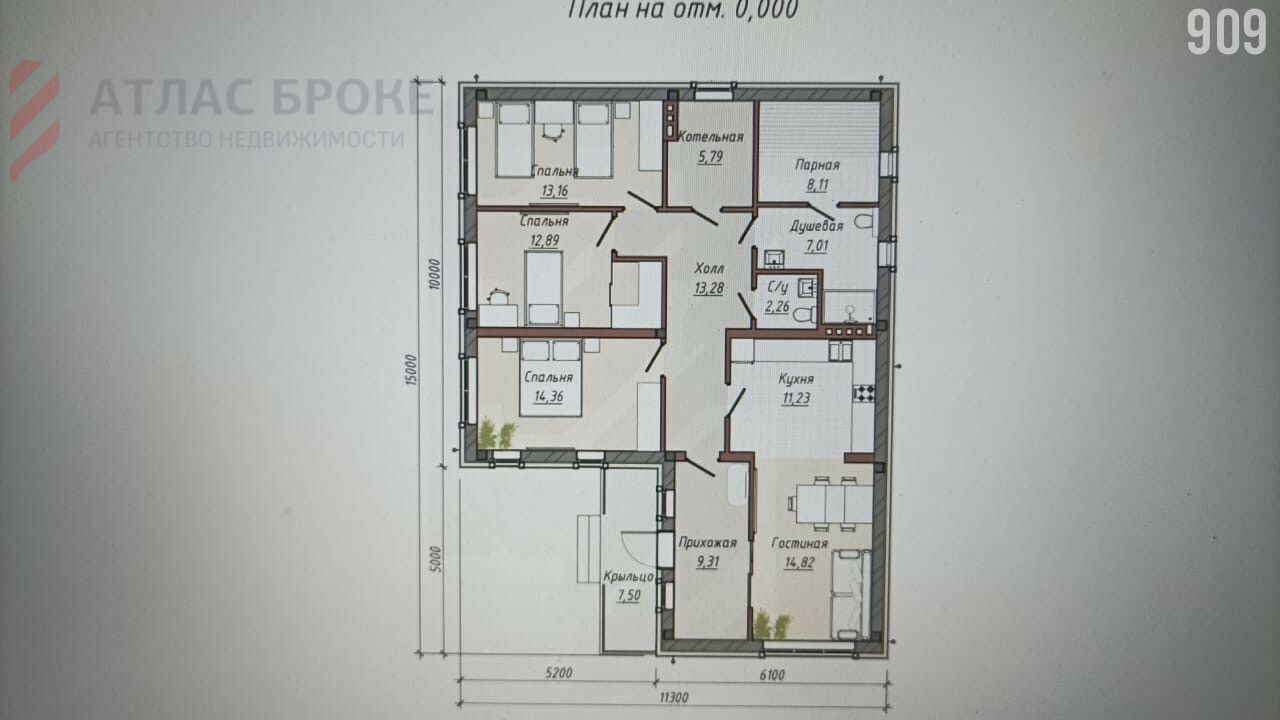 •B доме 3 спaльни, большая кухня-гостинная с выходом на террасу, гардеробная, 2 с/у, котельная, постирочная, в процессе строительства имеется возможность что-то изменить!