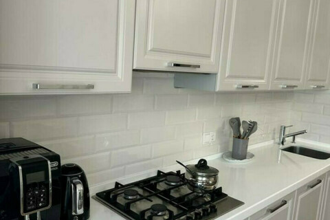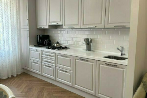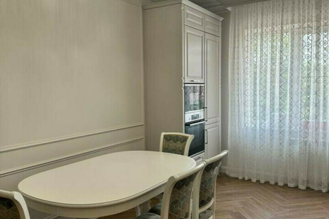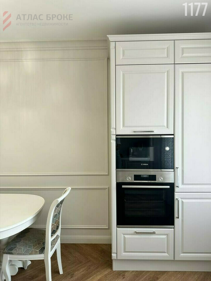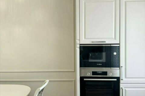 Кухня-гостиная 24 м: вся техника фирмы BOSH, все дверцы с доводчиками, встроенная посудомоечная машина, встроенный духовой шкаф и микроволновая печь, стол раскладывается, выполнен из массива дуба