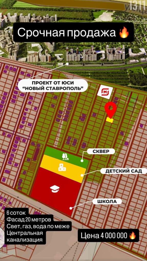 Когда возле участка будет школа, сад и новый микрорайон ЮСИ, в котором планируется строительство :